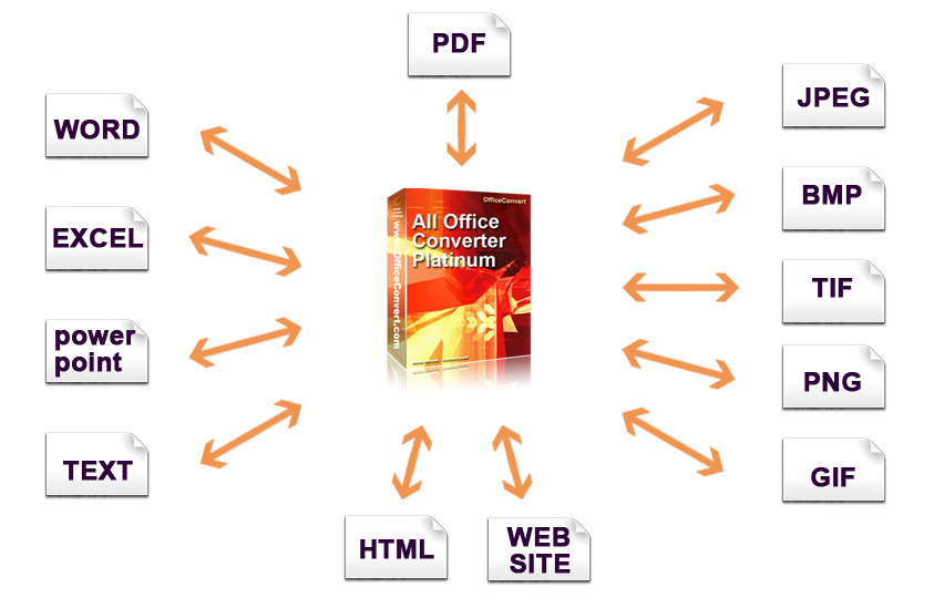 All Office Converter Platinum is an easy-to-use and professional document conversion tool. It can support batch converting documents, web and images with high good quality for business and individual to improve the work efficiency. With this powerful converter, you can create PDF file from versatile formats and convert PDF file to other versatile formats with super output quality and effectively. More, you can convert between different office document formats, web, images. It can support comprehensive formats: Word(doc, docm, docx), Excel(xls .xlsx. xlsm),PowerPoint(ppt, pptc, pptm),PDF,XLS,RTF,TXT,HTM/HTML,Website,JPG,BMP,GIF,TIF,WMF,EMF,TGA, RLE,PNG etc. |
